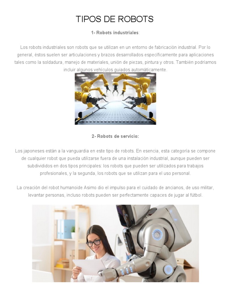 subdivididos en dos tipos principales: los robots que pueden ser utilizados para trabajos