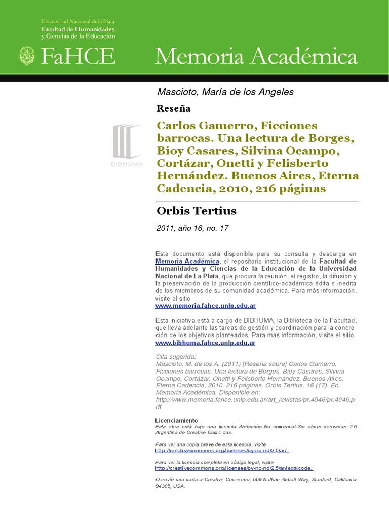 Eterna Cadencia, 2010, 216 páginas. Orbis Tertius, 16 (17). En