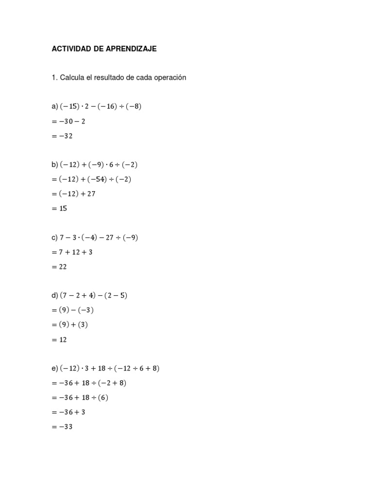 1. Calcula el resultado de cada operación