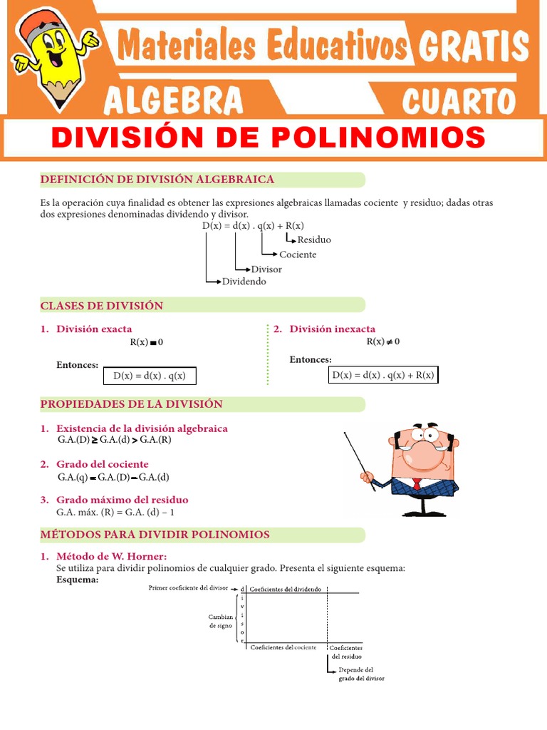 MÉTODOS PARA DIVIDIR POLINOMIOS