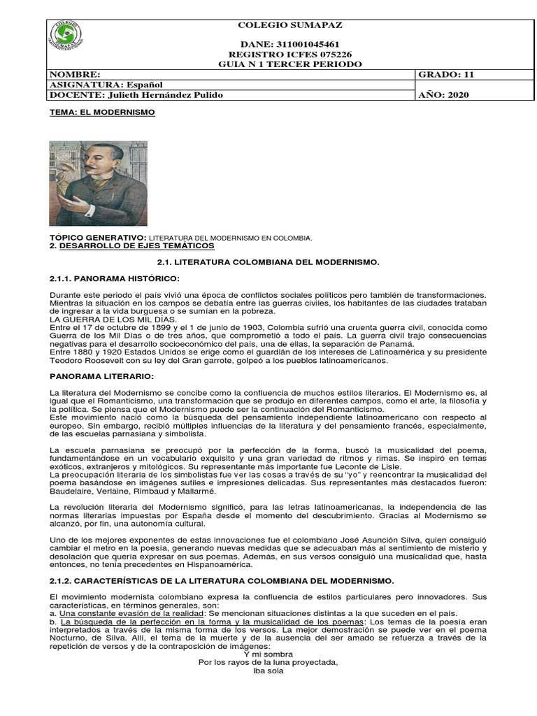 2.1. LITERATURA COLOMBIANA DEL MODERNISMO.