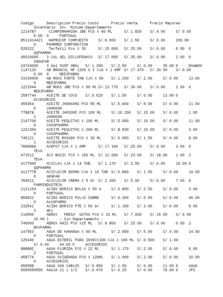 123244447 ALCOHOL PURO FCO X 250 S/.2.380 S/.4.00 S/.0.00 0.00 0