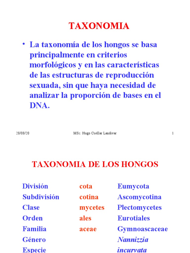 • La taxonomía de los hongos se basa