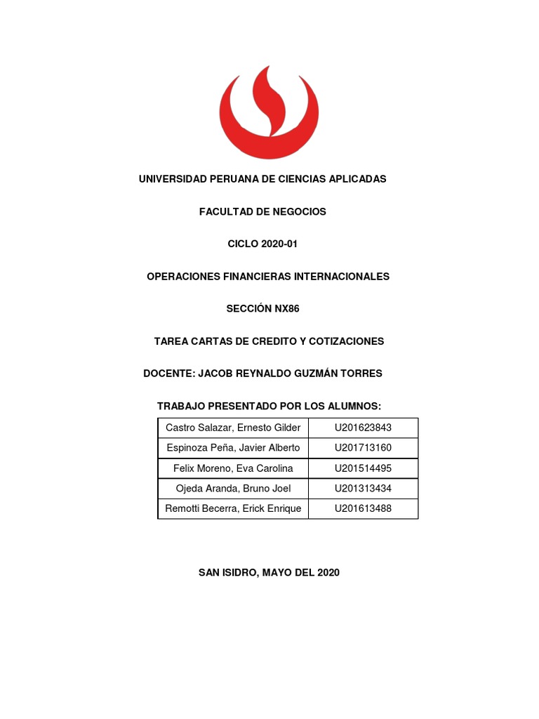 TAREA CARTAS DE CREDITO Y COTIZACIONES