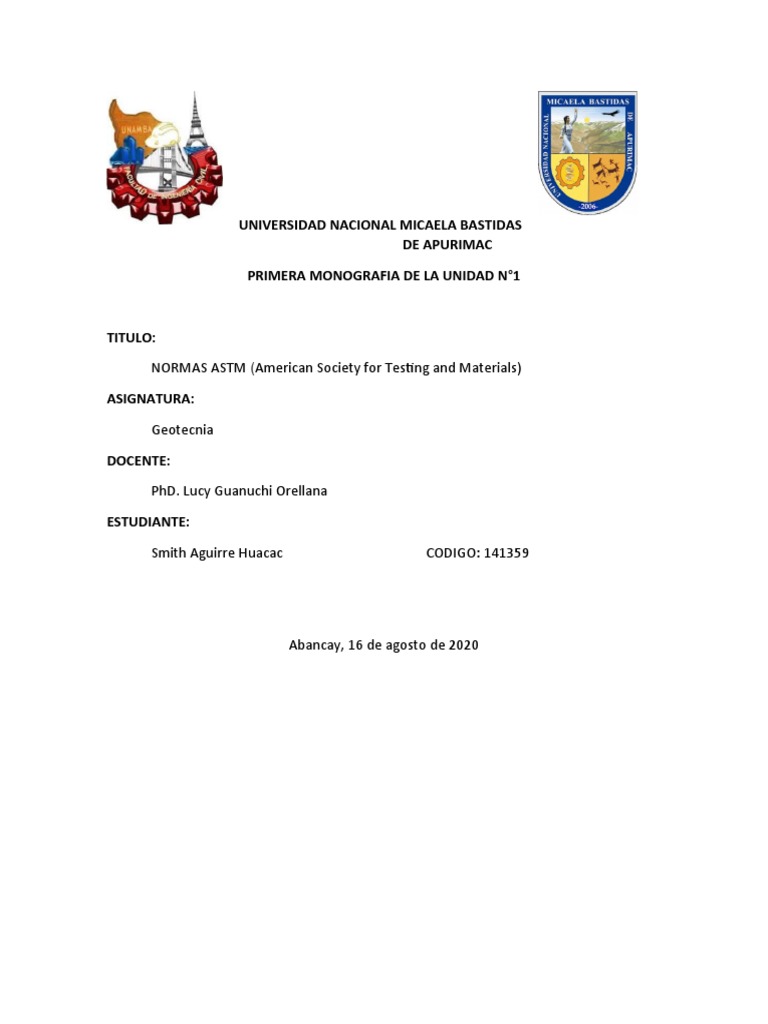 En el presente trabajo daremos información referente a la norma ASTM internacional