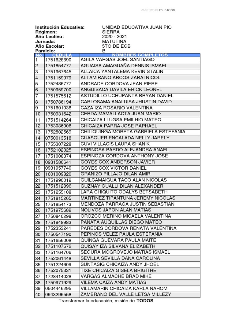 Año Escolar: 5TO DE EGB