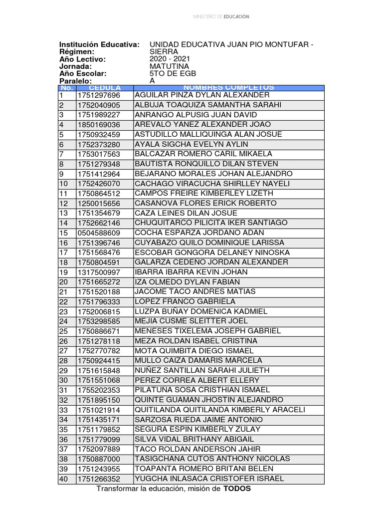 Año Escolar: 5TO DE EGB