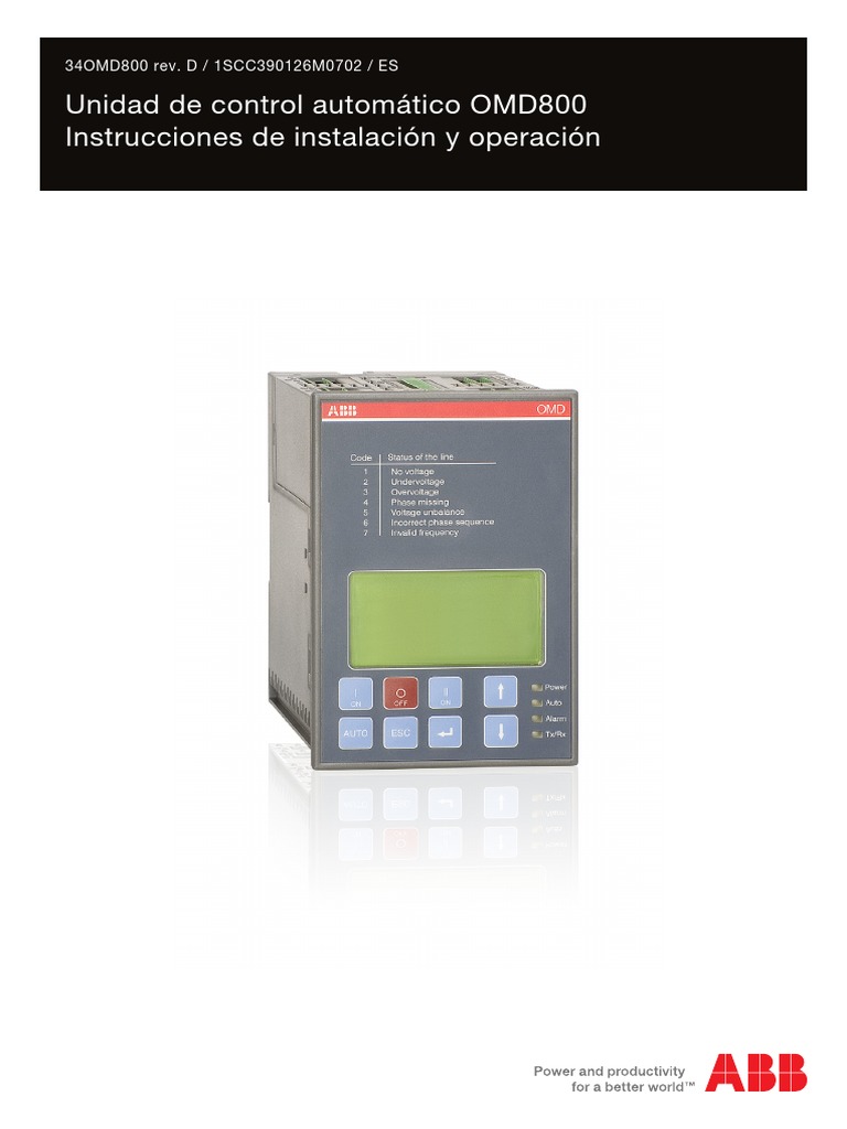 Este manual describe la instalación y la operación básica de la unidad de control automático OMD800.