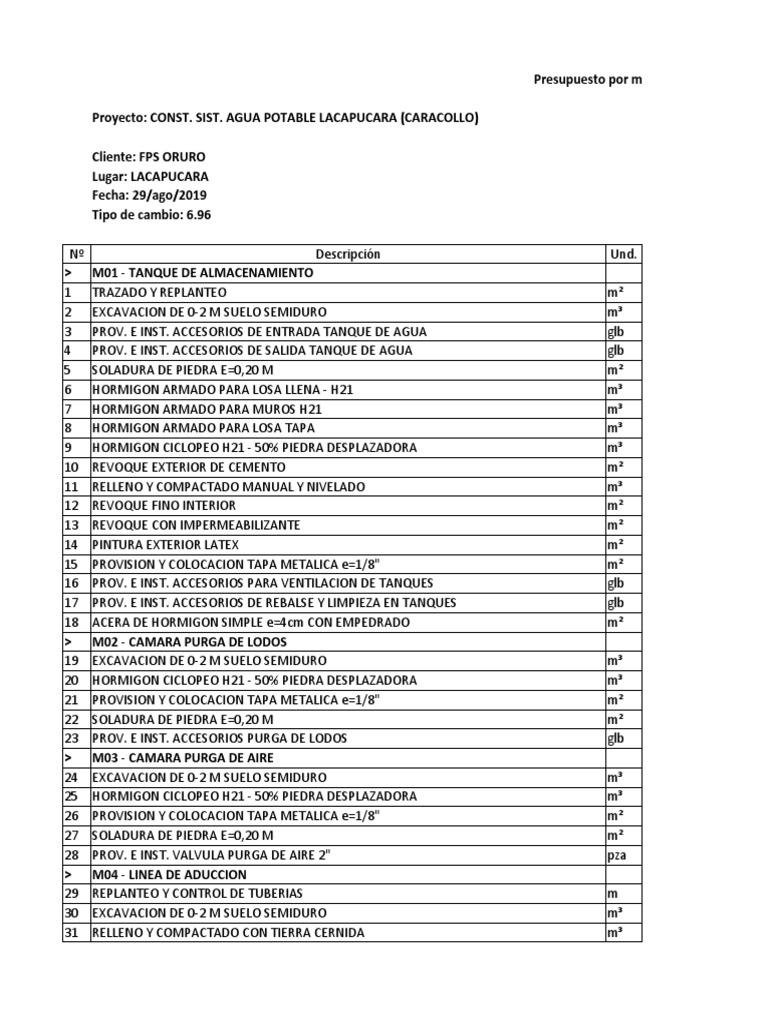 41 PASO DE QUEBRADA PARA TUBERIA FG 1" CON ACCESORIOS Y ANCLAJE SIN TORRE m