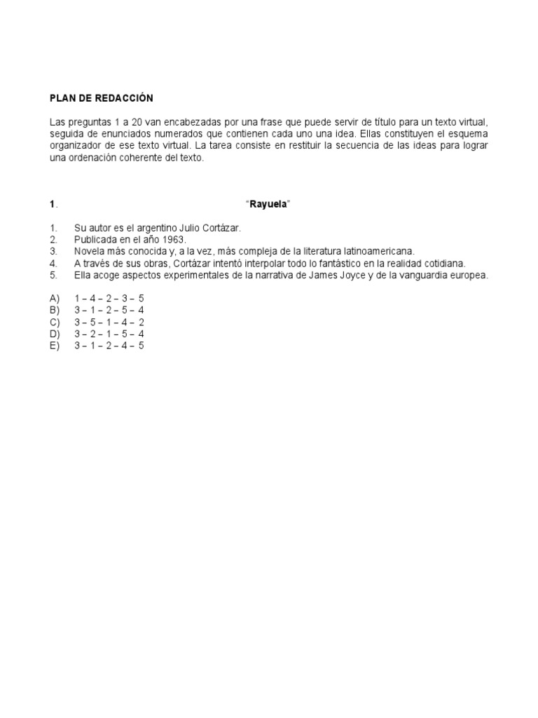 Las preguntas 1 a 20 van encabezadas por una frase que puede servir de título para un texto virtual,