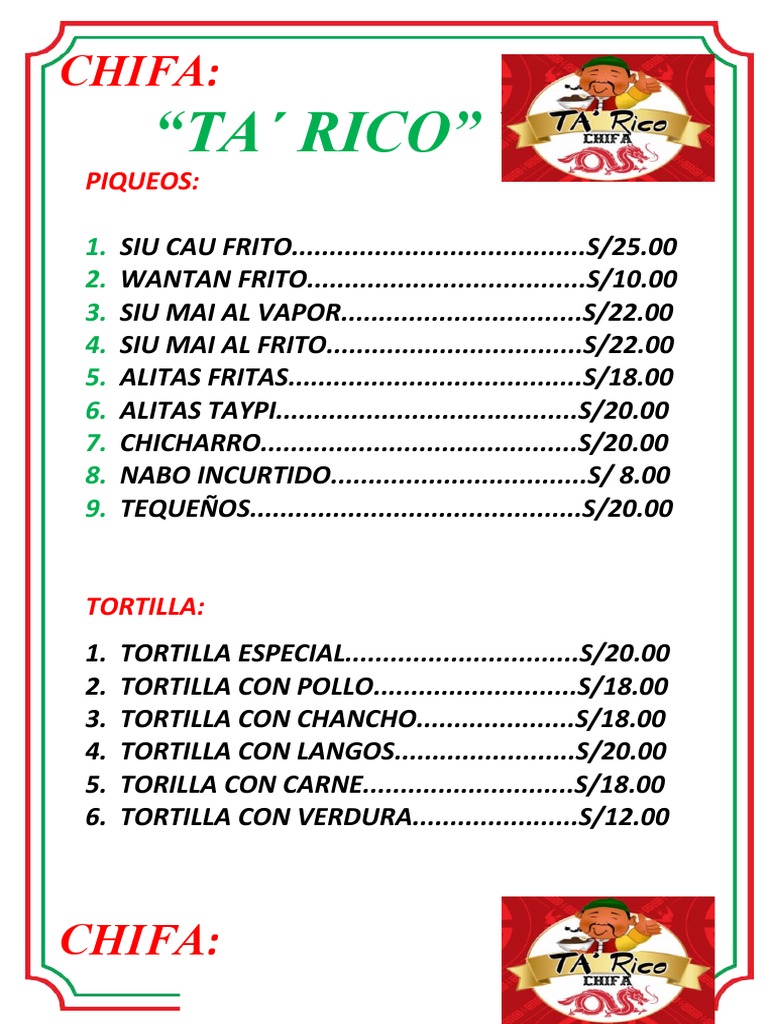 6. CHAUFA SAMSI...................................................S/18.00