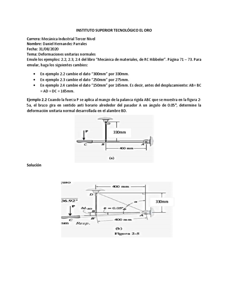 Emule los ejemplos: 2.2, 2.3, 2.4 del libro “Mecánica de materiales, de RC Hibbeler”. Página 71 – 73. Para