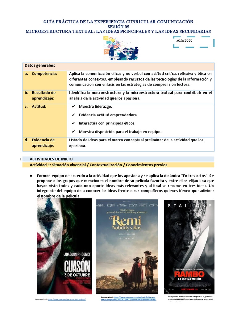 ● Se aplica la Rúbrica - SESIÓN 03. Tema: Microestructura textual: idea principal e ideas secundarias.