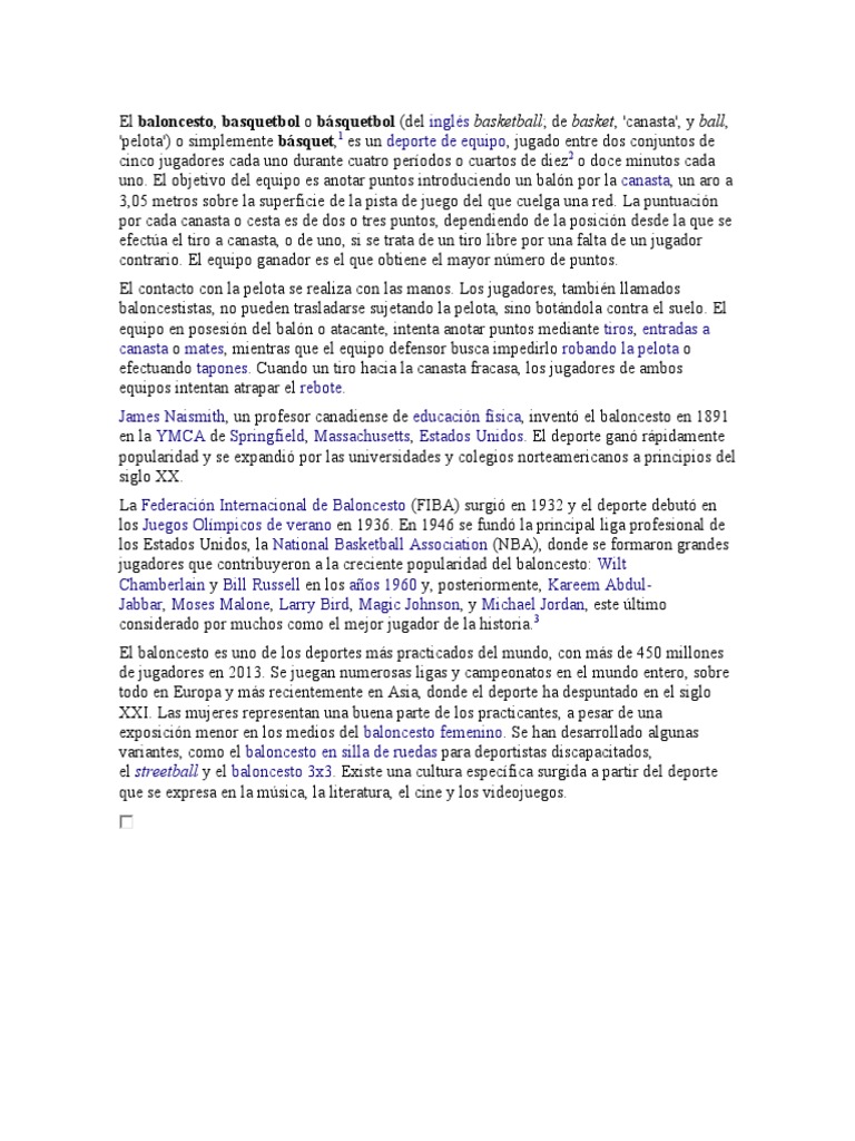 'pelota') o simplemente básquet,1 es un deporte de equipo, jugado entre dos conjuntos de