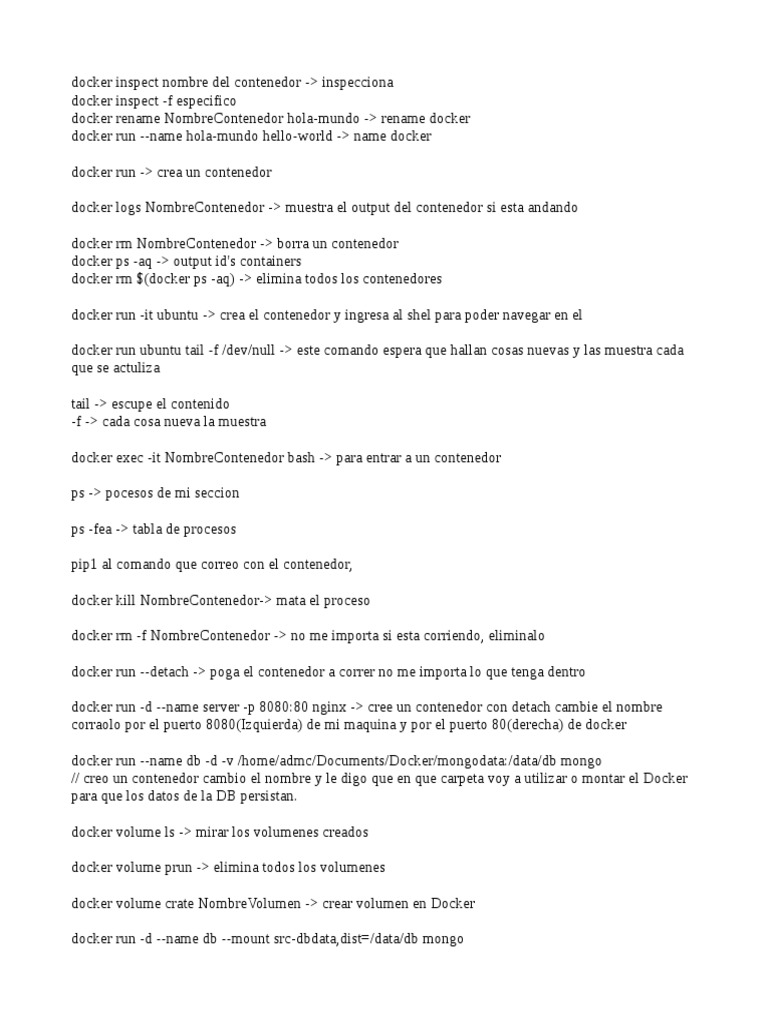 docker inspect nombre del contenedor -> inspecciona