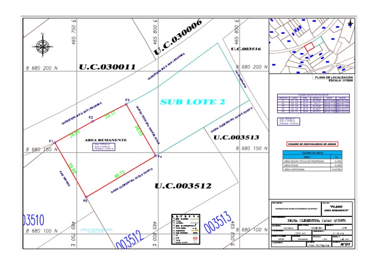 AREA REMANENTE ¨ SUPERFICIE : PERIMETRO :