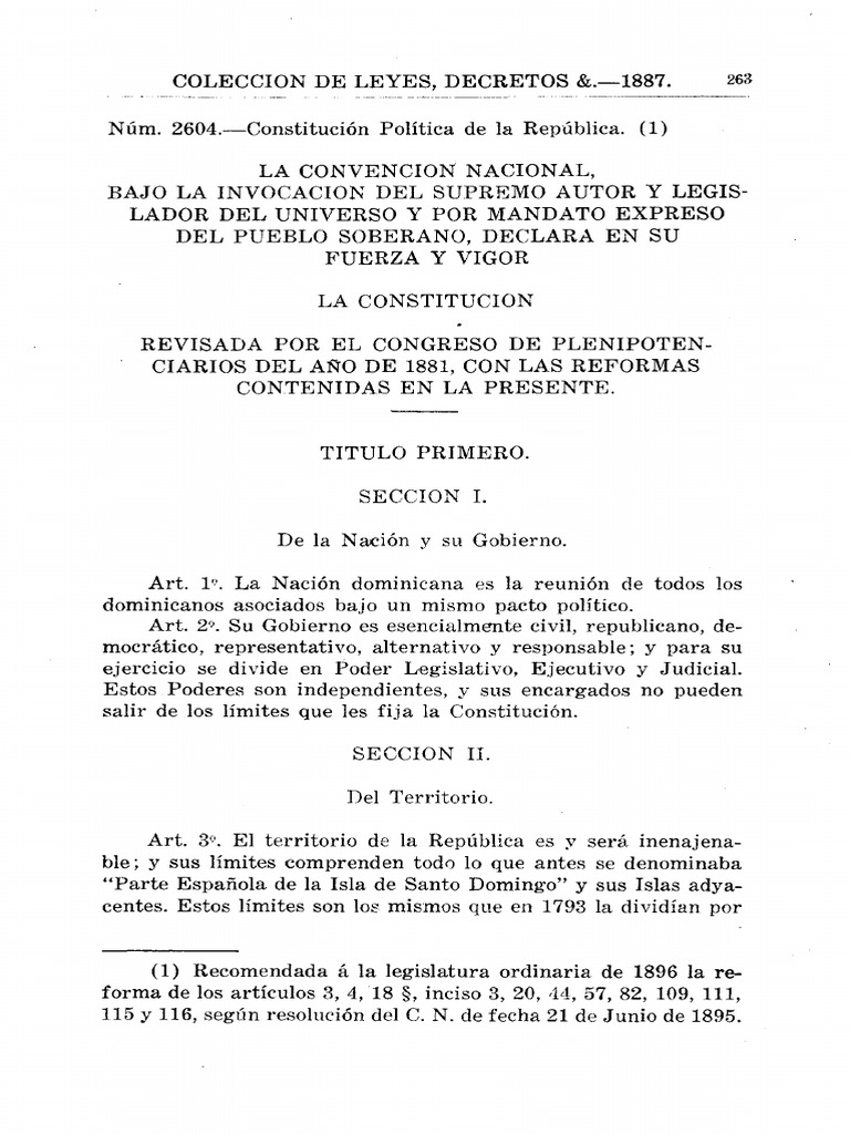 Art. 1". La Nacion dominicana es la reunion de todos los