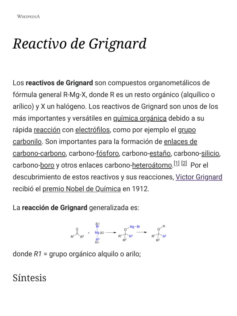 arílico) y X un halógeno. Los reactivos de Grignard son unos de los