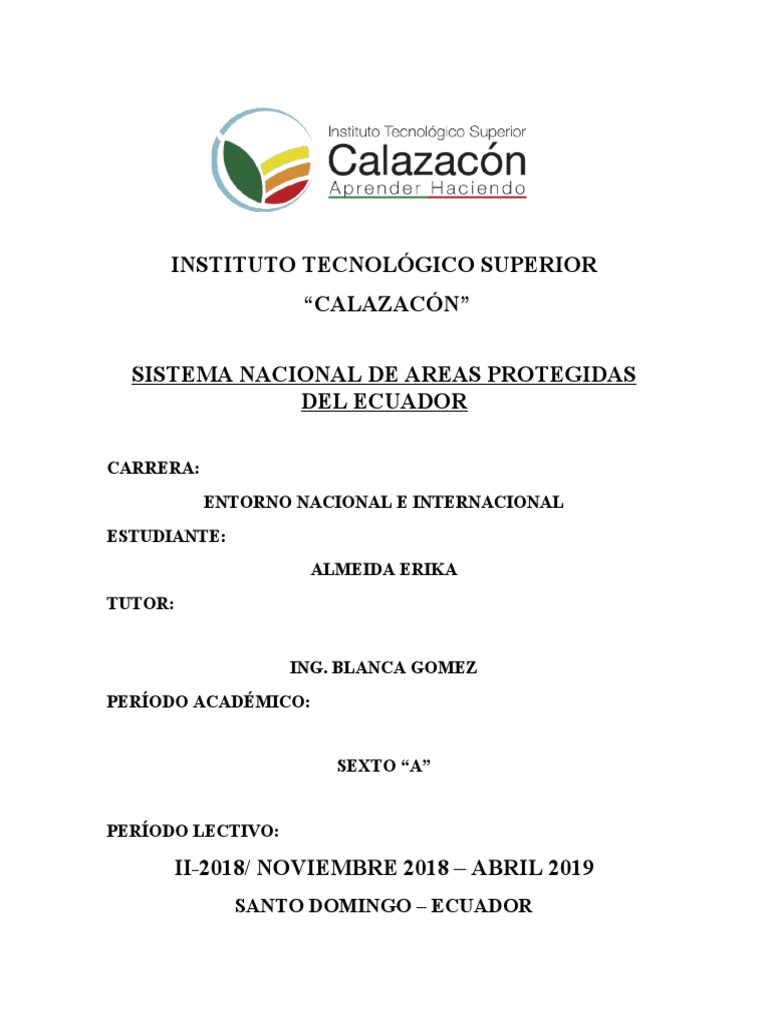 SISTEMA NACIONAL DE AREAS PROTEGIDAS DEL ECUADOR