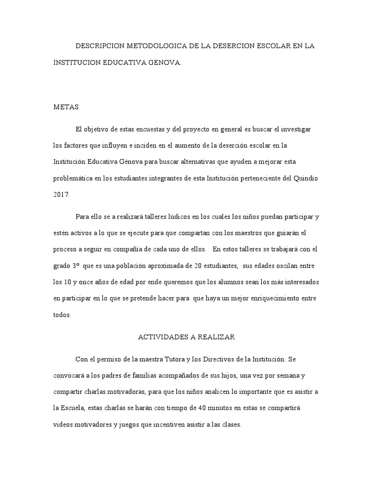 DESCRIPCION METODOLOGICA DE LA DESERCION ESCOLAR EN LA