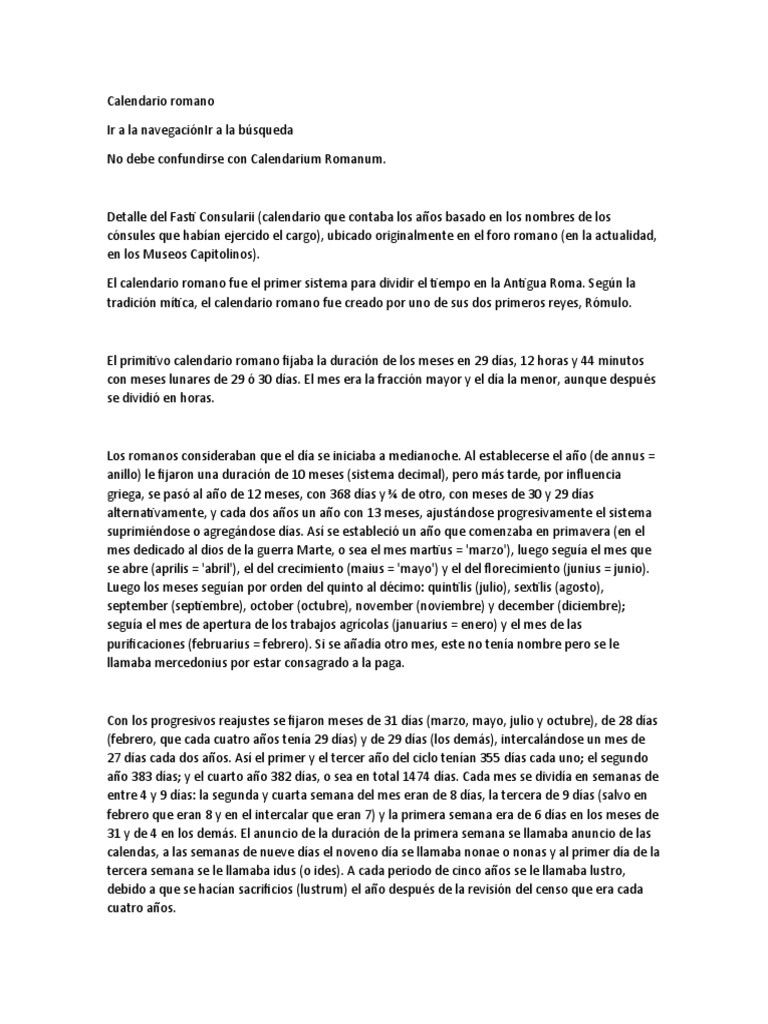 El calendario romano fue el primer sistema para dividir el tiempo en la Antigua Roma. Según la
