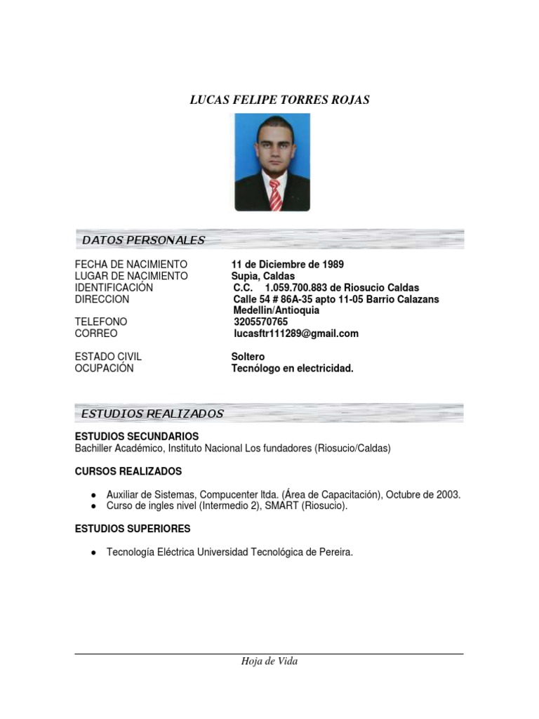 LUGAR DE NACIMIENTO Supìa, Caldas