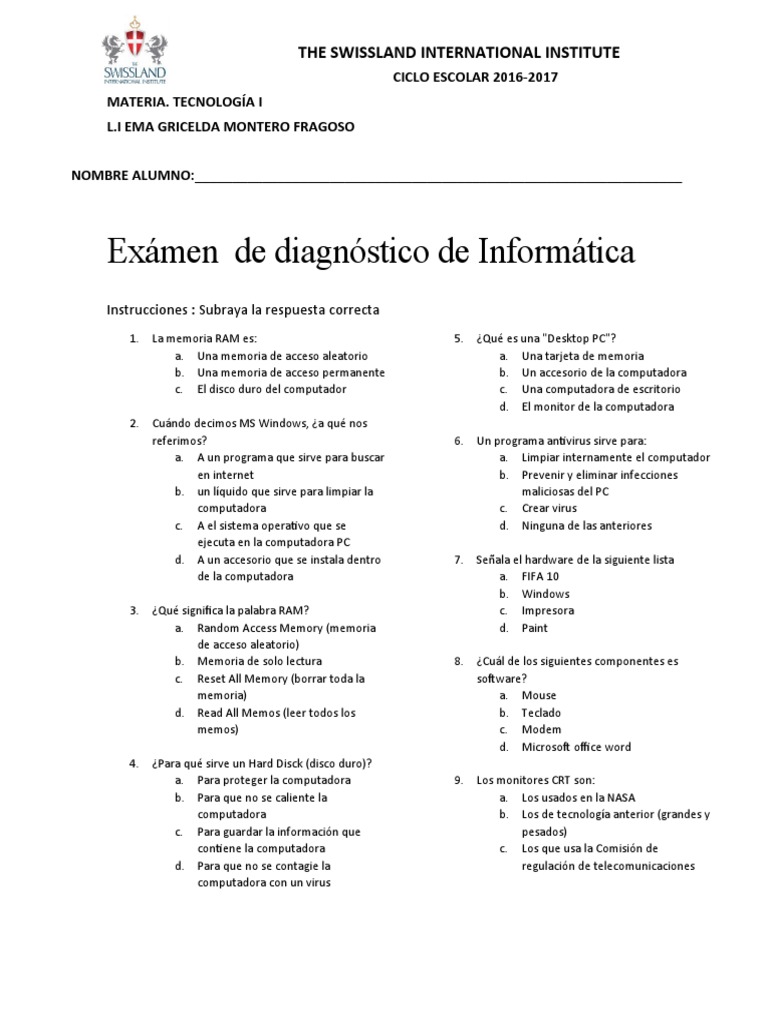 3. ¿Qué significa la palabra RAM? c. Impresora