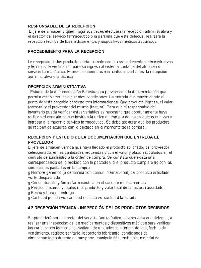 recepción técnica de los medicamentos y dispositivos médicos adquiridos