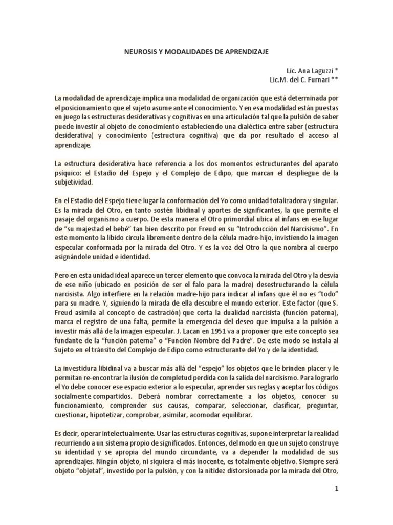 Esta breve reseña de las modalidades de aprendizaje en las estructuras psicopatológicas es una