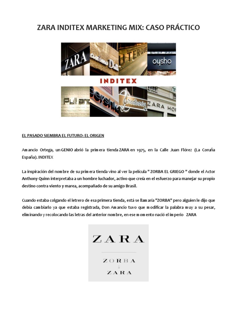 ZARA INDITEX MARKETING MIX: CASO PRÁCTICO