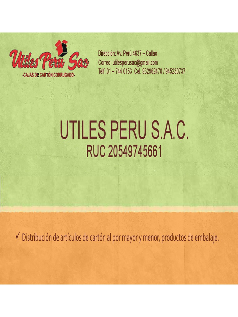 ▪ UTILES PERU S.A.C. , constituida el año 2012 dedicada a la
