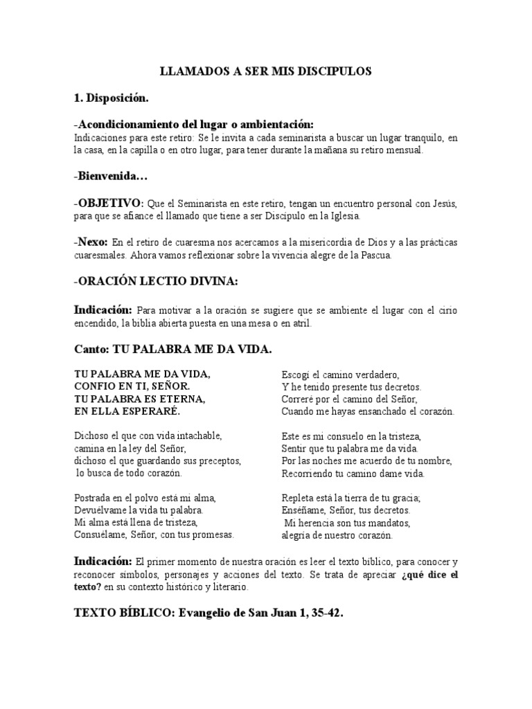 Indicaciones para este retiro: Se le invita a cada seminarista a buscar un lugar tranquilo, en