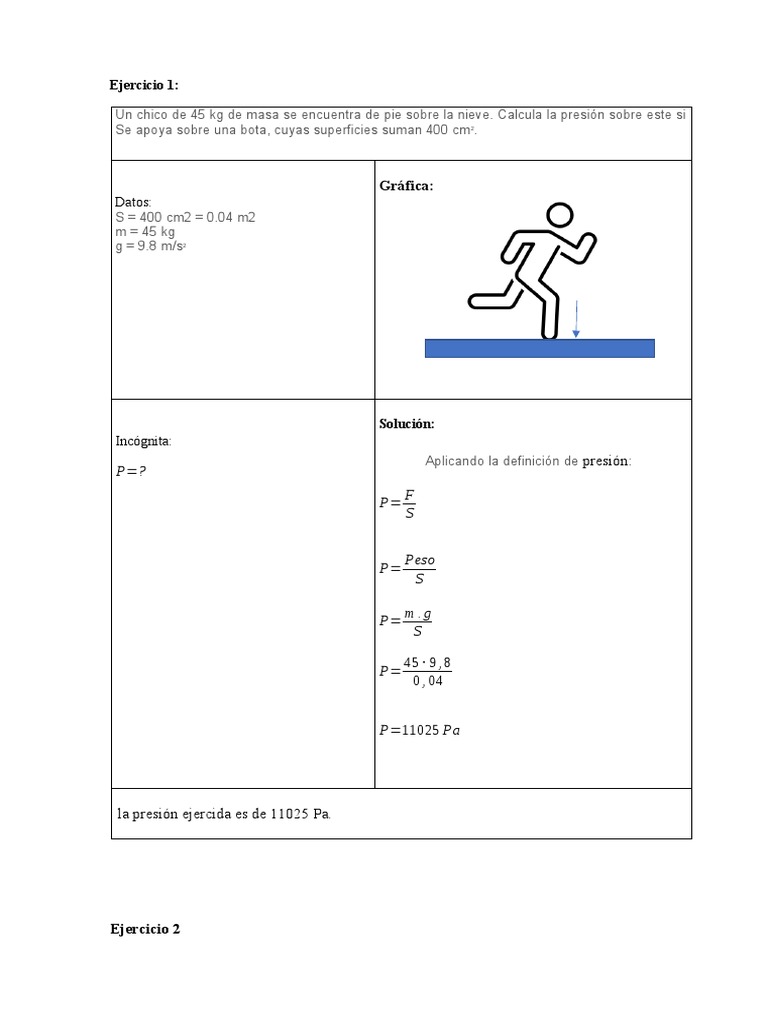 Un chico de 45 kg de masa se encuentra de pie sobre la nieve. Calcula la presión sobre este si