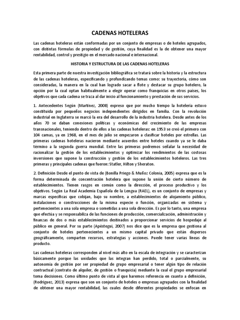 de las cadenas hoteleras, especificando y profundizando temas como: su trayectoria, cómo son