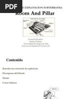 chutes o embudos y túneles de acceso debajo de la masa de mineral roto.