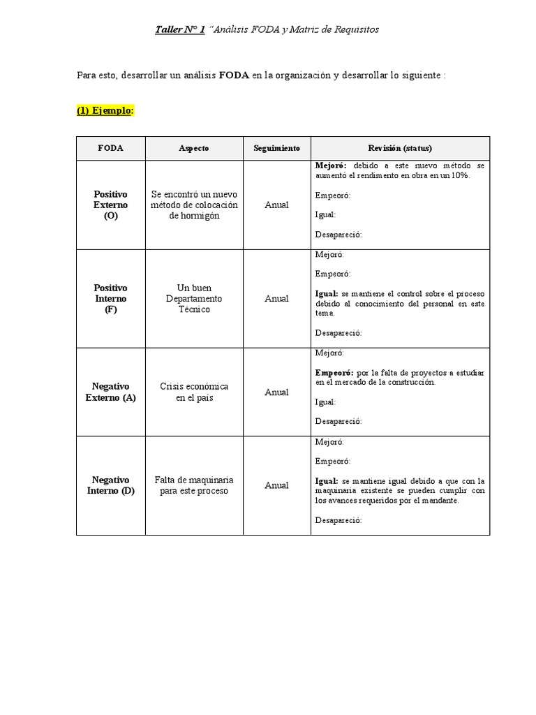 Taller N° 1 “Análisis FODA y Matriz de Requisitos