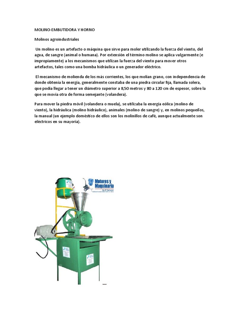 viento), la hidráulica (molino hidráulico), animales (molino de sangre) y, en molinos pequeños,