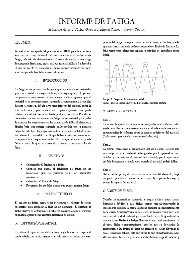 necesario conocer los niveles de fatiga de un material para poder Fase 1: