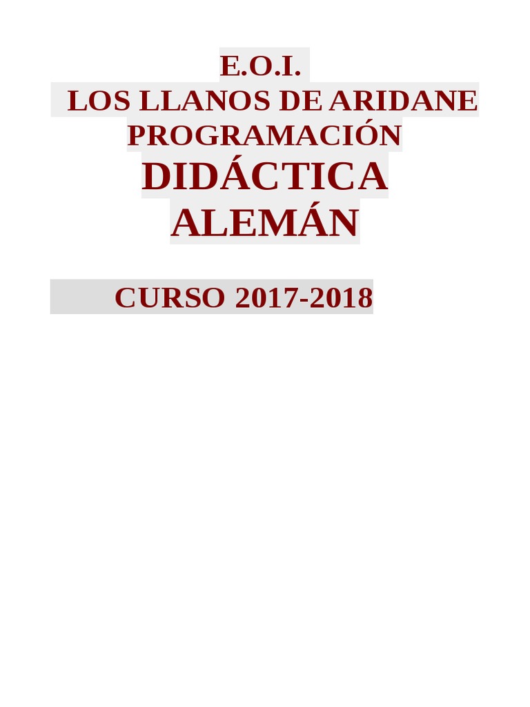 El presente curso se imparte en esta Escuela de Idiomas 1º y 2º de Nivel básico y 1ºy 2º de Nivel