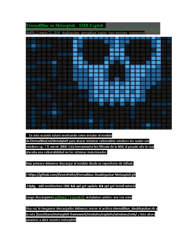 Sh4Rk_0 marzo 22, 2018 doublepulsar, eternalblue, exploit, hack windows, meterpreter