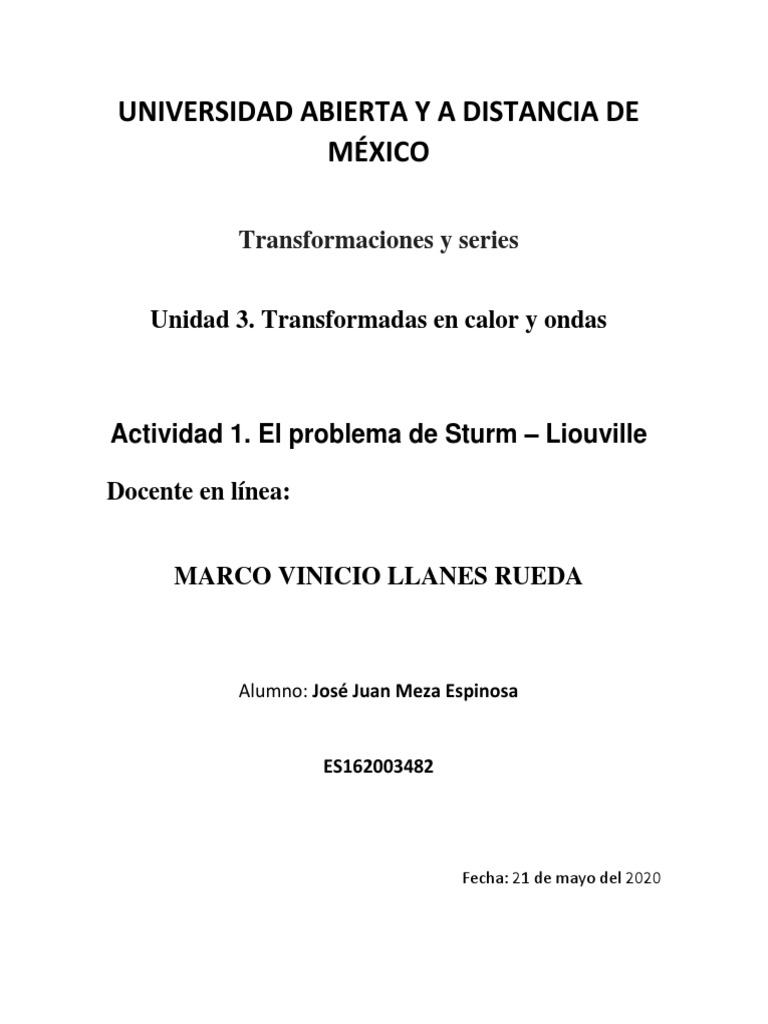 Actividad 1. El problema de Sturm – Liouville