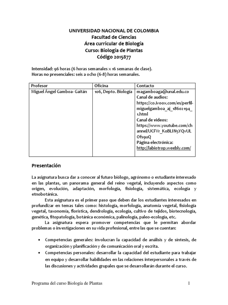 Programa del curso Biología de Plantas 1