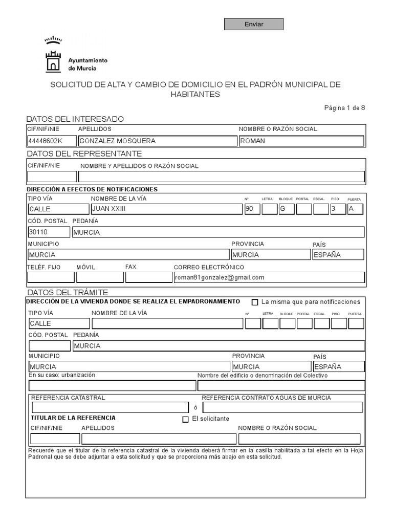 SOLICITUD DE ALTA Y CAMBIO DE DOMICILIO EN EL PADRÓN MUNICIPAL DE HABITANTES