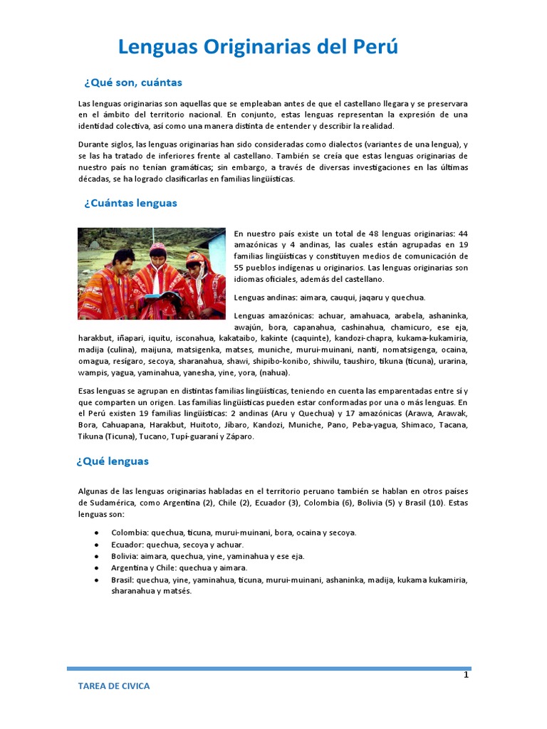 55 pueblos indígenas u originarios. Las lenguas originarias son