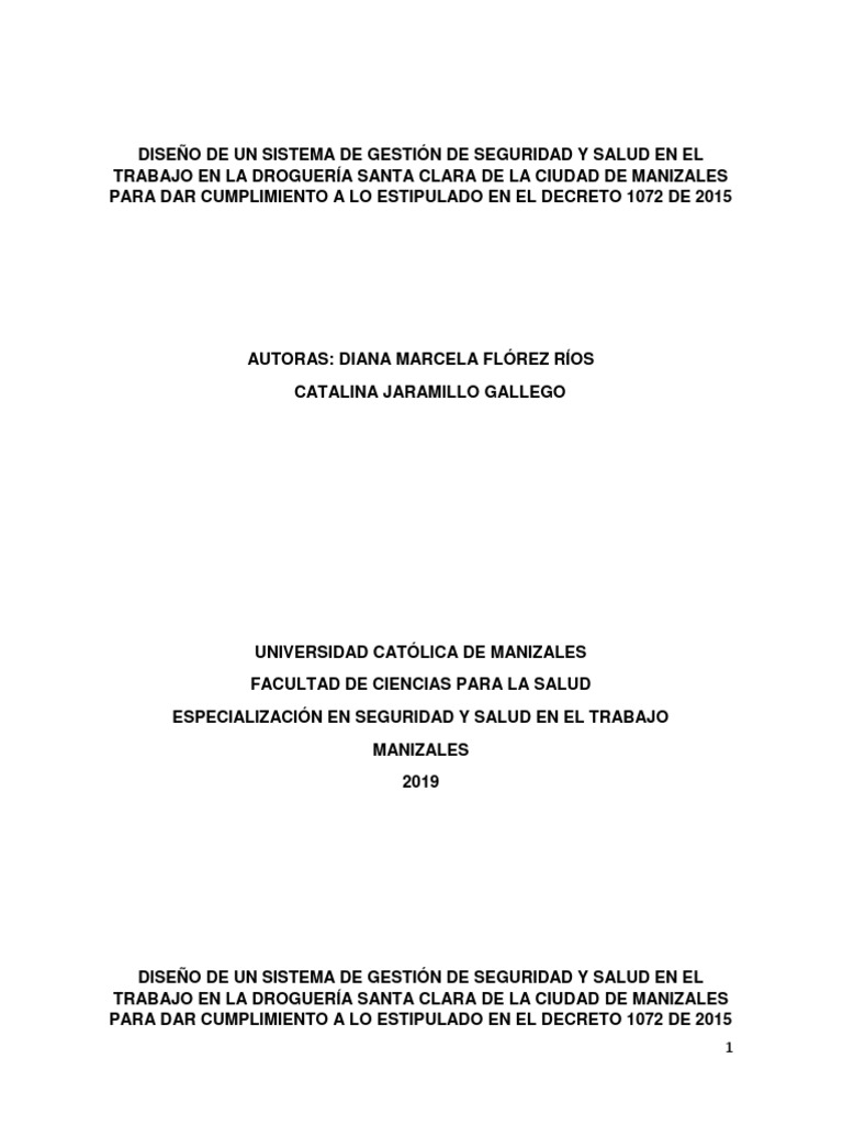Diseñar un Sistema de Gestión de Seguridad y Salud en el Trabajo en la Droguería
