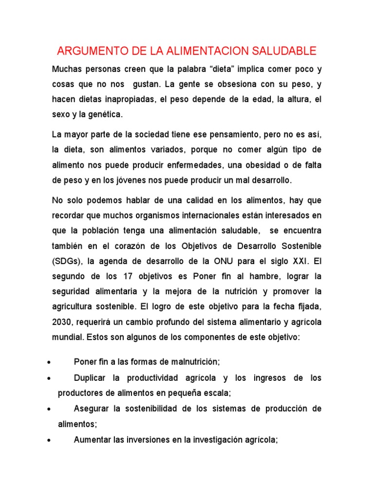 ARGUMENTO DE LA ALIMENTACION SALUDABLE