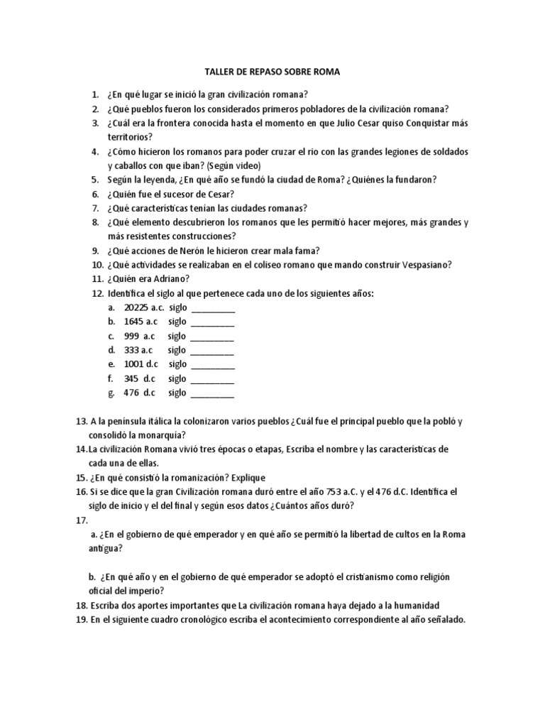 TALLER DE REPASO SOBRE ROMA
