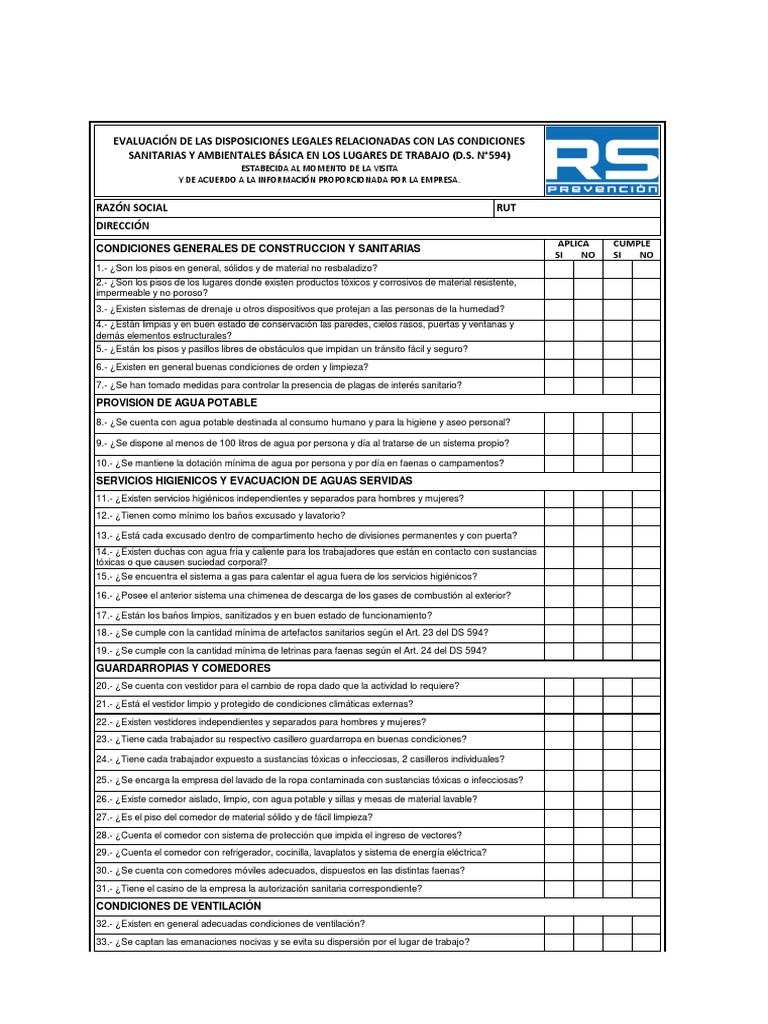 SANITARIAS Y AMBIENTALES BÁSICA EN LOS LUGARES DE TRABAJO (D.S. N°594)