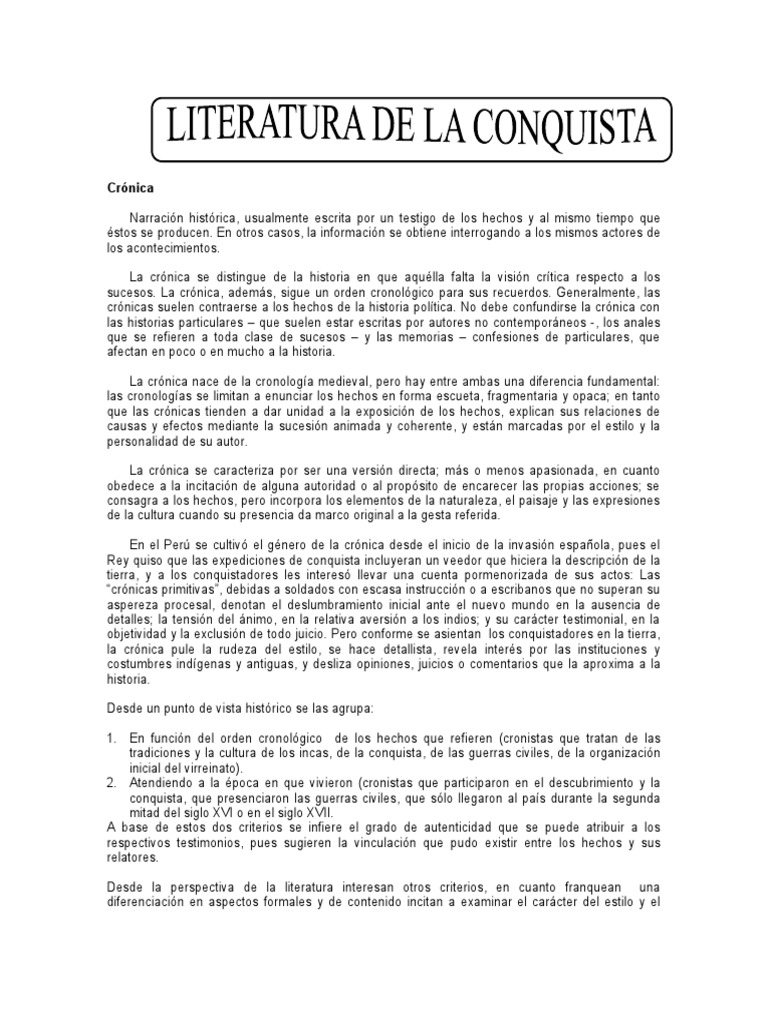 En el Perú se cultivó el género de la crónica desde el inicio de la invasión española, pues el