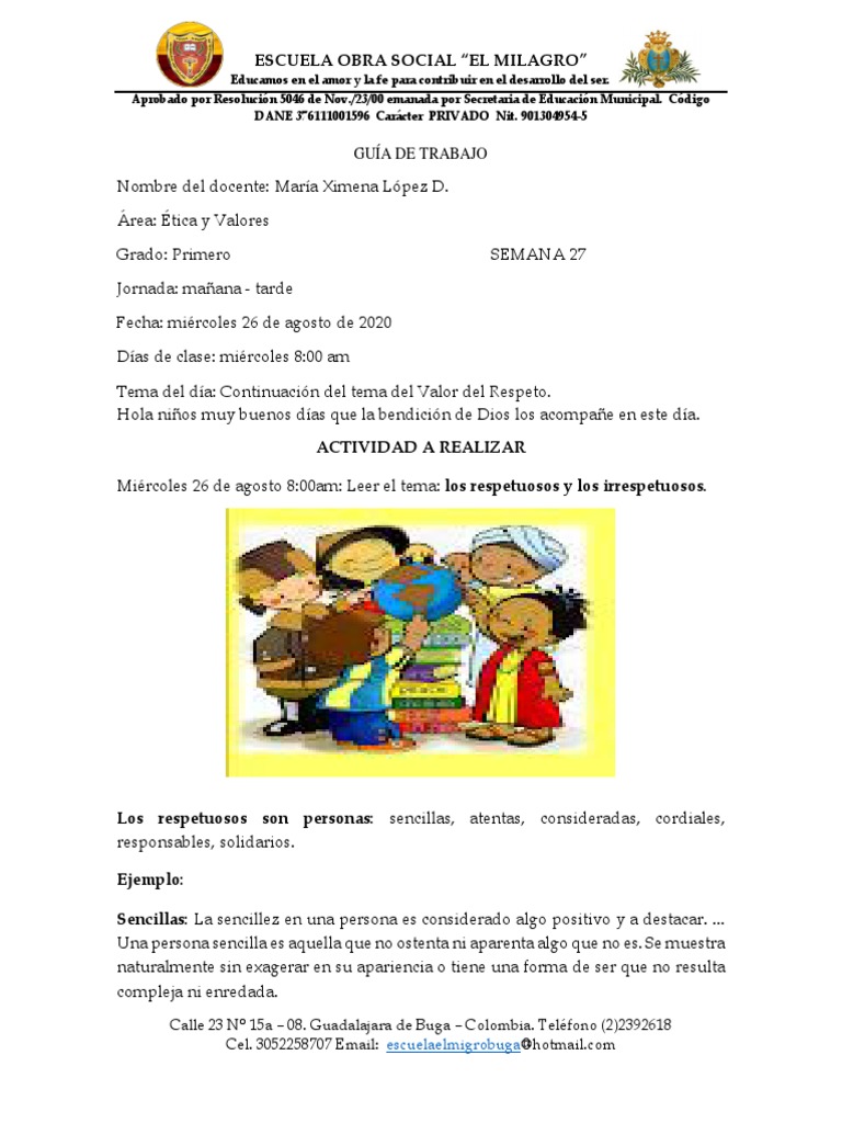 Miércoles 26 de agosto 8:00am: Leer el tema: los respetuosos y los irrespetuosos.